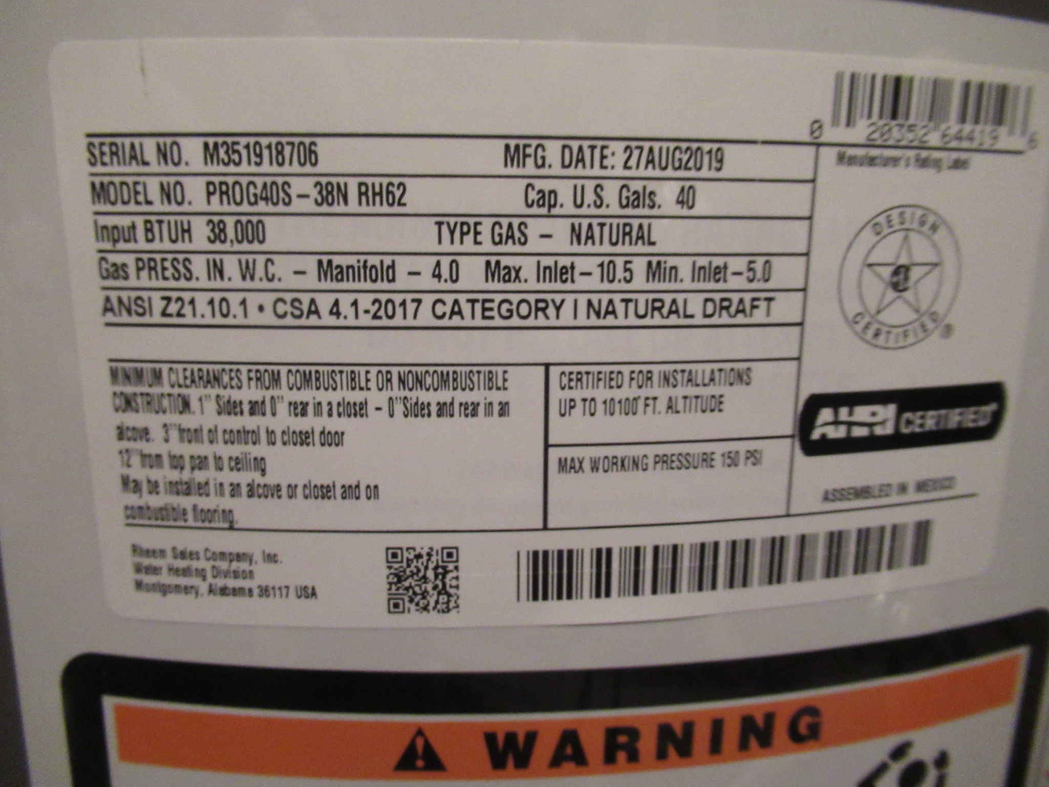 | Home Depot | 2019-09-11 | Two Rheem 40 NG 38,000 BTUs Short 6 yr Year HomeDepot | $1,128 | |