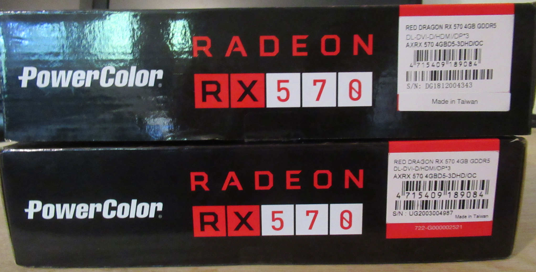 I purchased two AMD Radeon RX570 Graphics Cards. Manafactured by Powercolor: