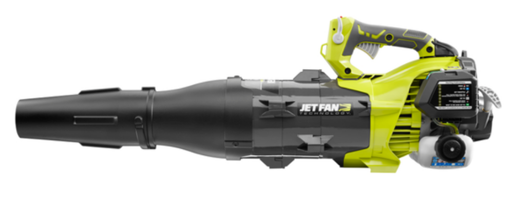 The RYOBI 2-Cycle Gas Jet Fan Blower uses innovative Jet Fan Technology, a three stage fan design that optimizes air flow to generate an amazing 520 CFM and 160 MPH. The variable Speed Trigger and cruise control help you easily adjust to any area, from wide open yards to landscape beds. I purchased from Home Depot for $116 on 2021-04-03.