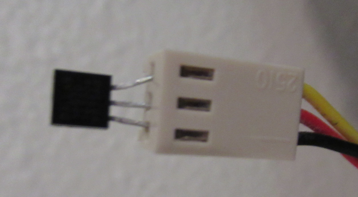 Previous set-up failed, one of the sensor legs pulled out. Created this for a replacement. Better to hang off the wall to get out of the way. Also, found it better to pay a few bucks and use a CPU fan extension connector to eliminate solder points. Conclusion
