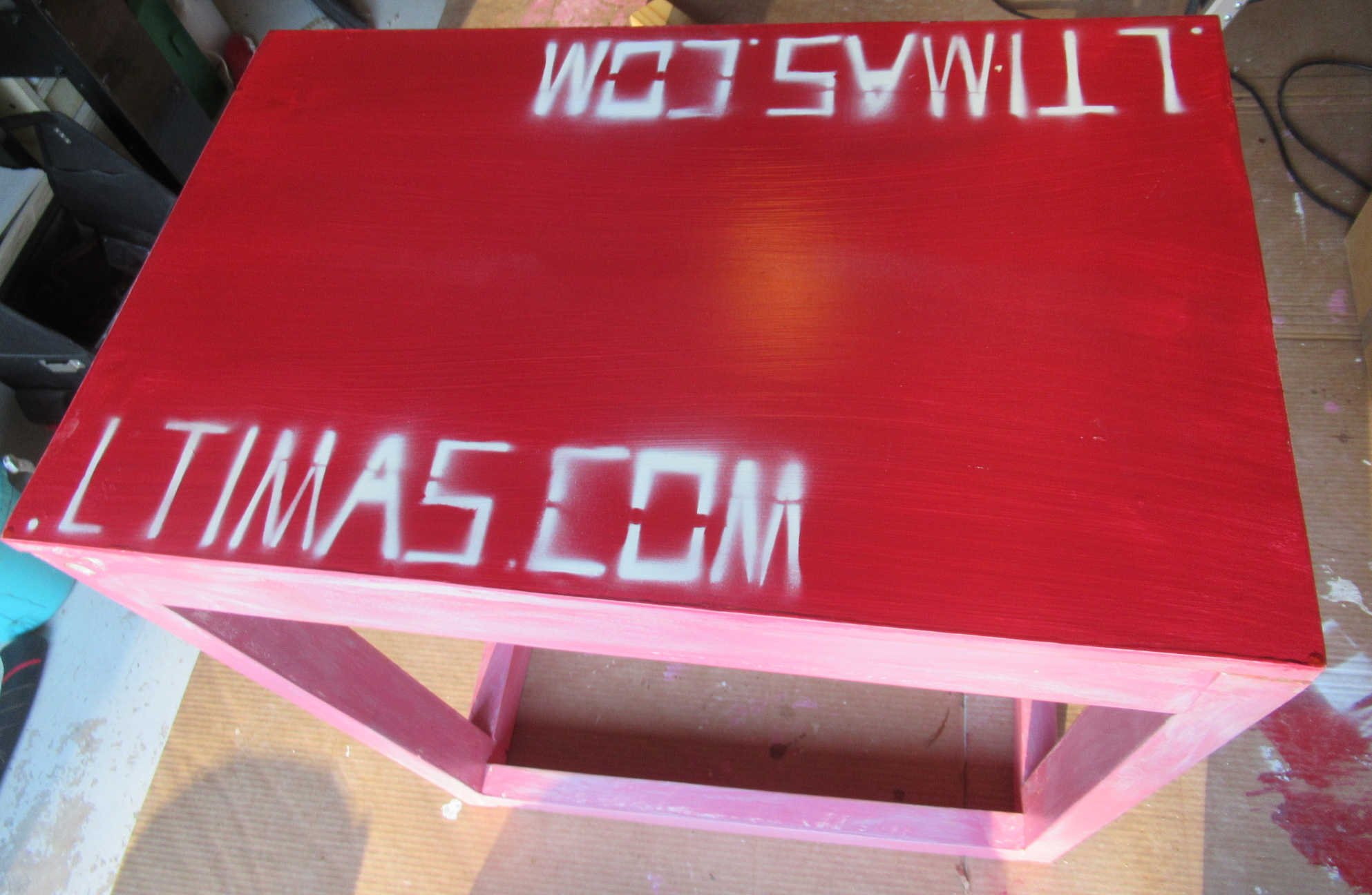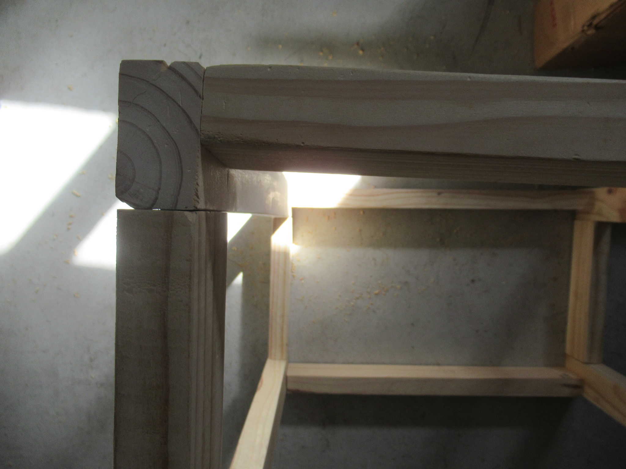 Only hand tools were used to build this end table. The legs were made out of 2x6s split and 3x4 plywood, with lag bolts, and wood screws.