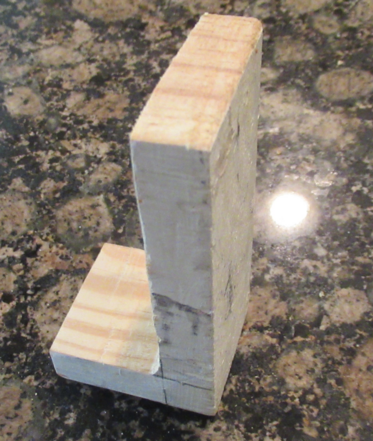 5. To mount a camera, find another piece of scrap wood and cut an L shape 3.5" long X 2" wide and 0.5" thick.