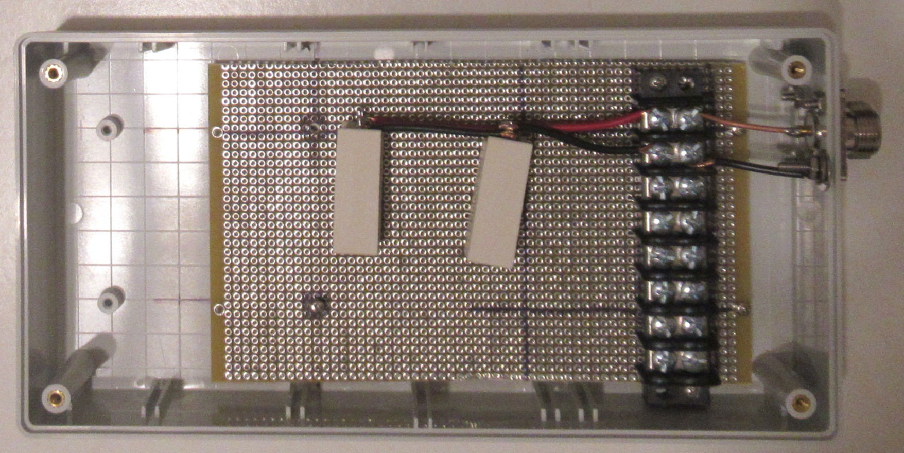 - Cut Vector Board to size, and drill holes to install into base of box .