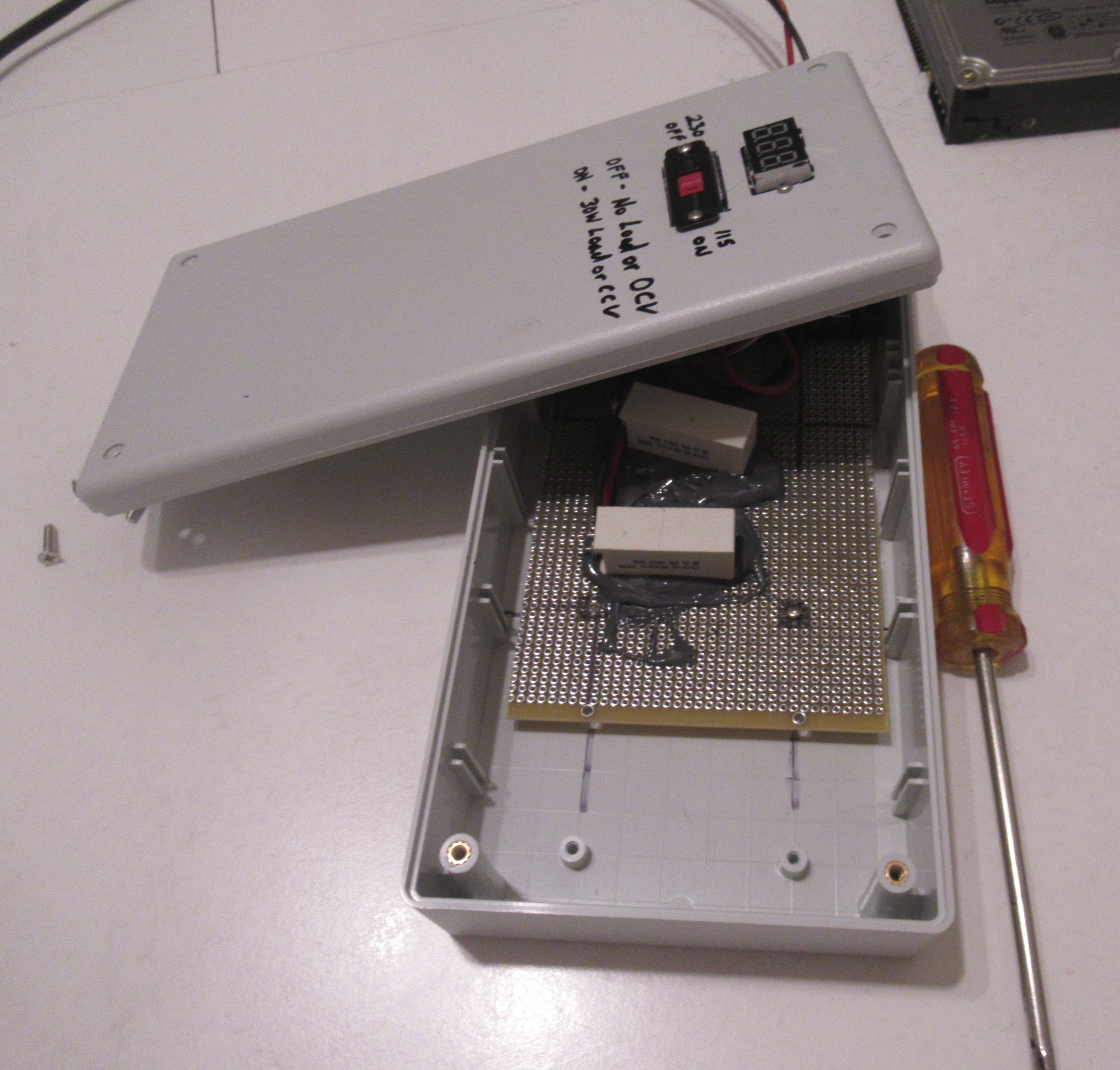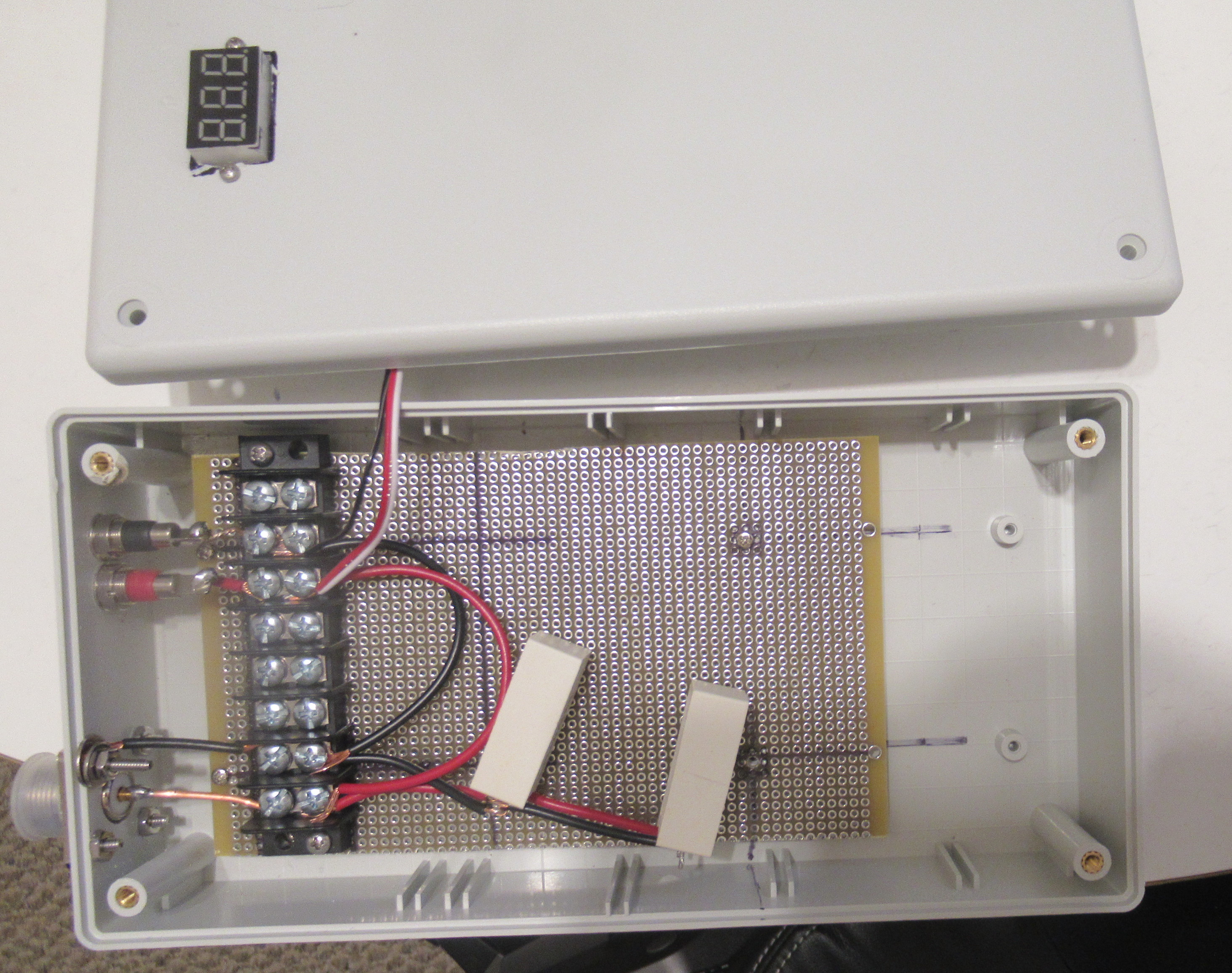 To build a 3 to 30 V Dummy Load with 30 W load capacity. Max. charge voltage is about 13.1 V, and recharge at 11.8 to 12.0 V. Note the box in the photos has a Type-N connector, that is not part of the standard box.