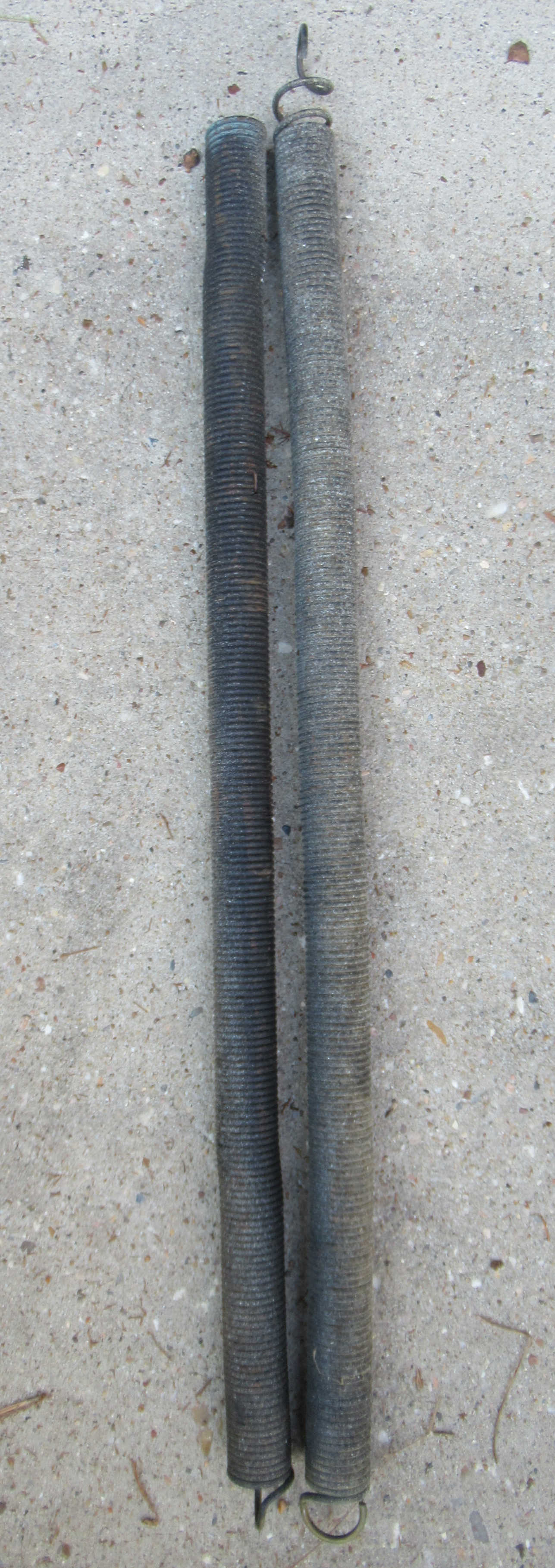 2026-01-03: The new springs were installed. The wheels on the door were greased. The old spring measured 1.17" OD; 0.91" ID; 25" LG.