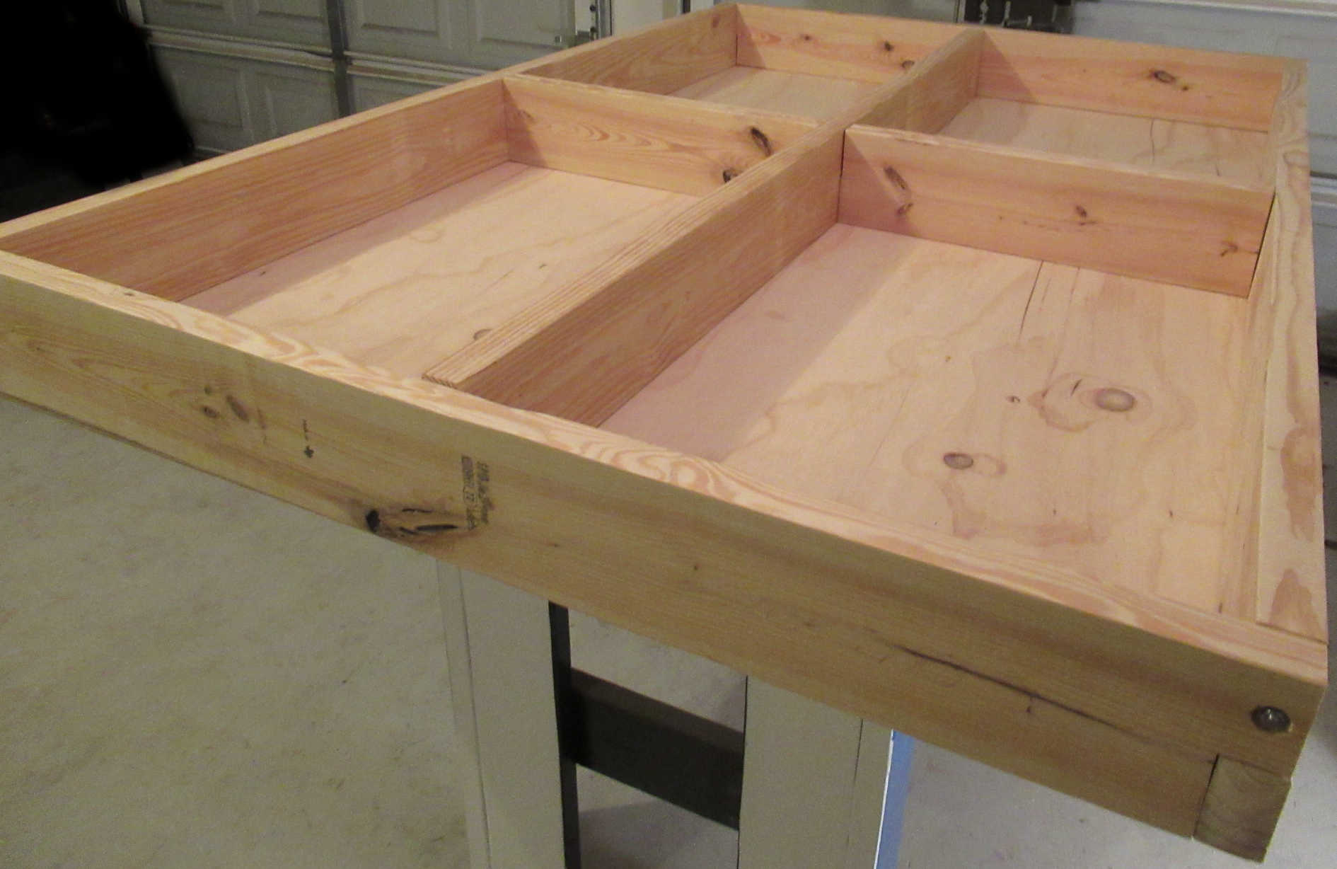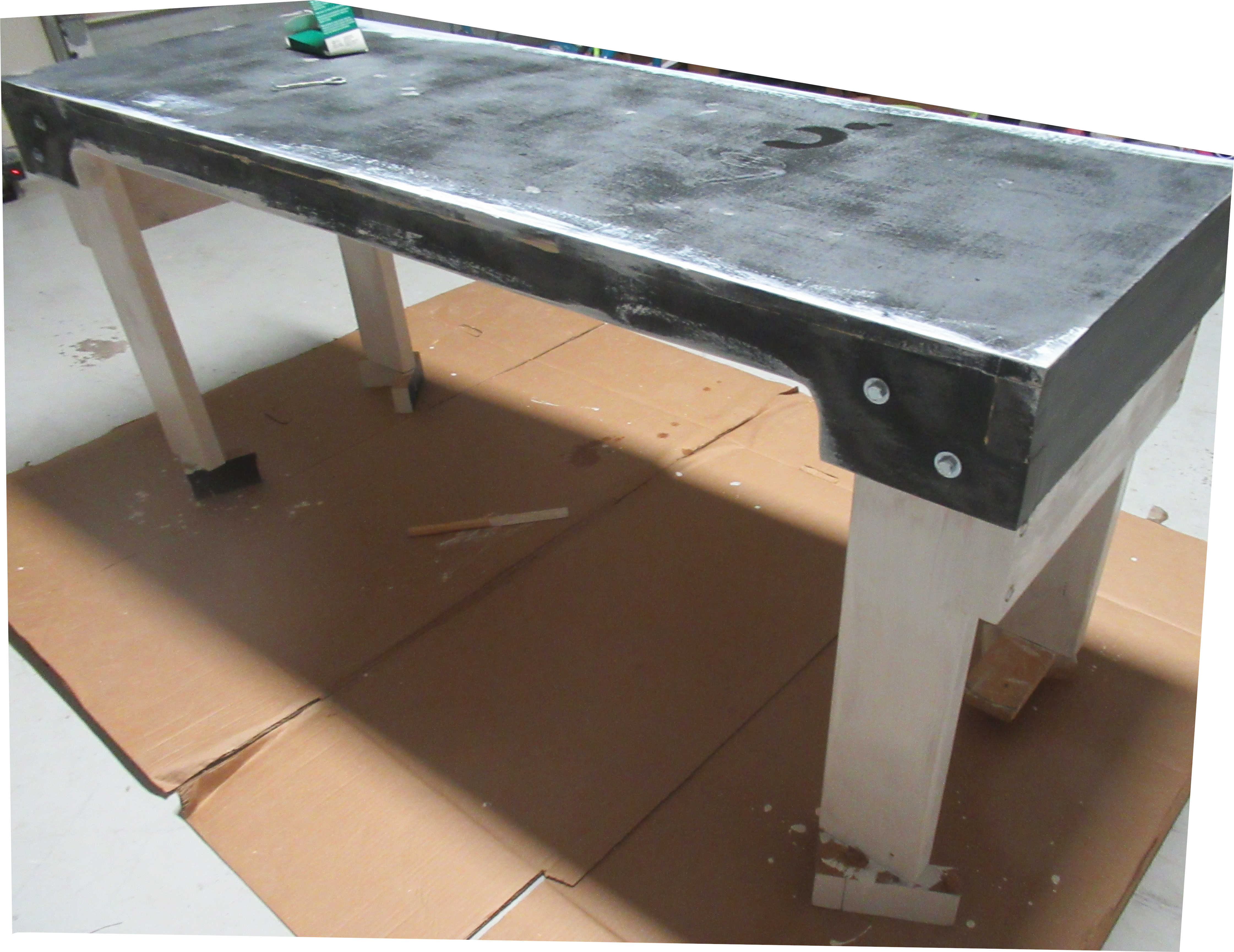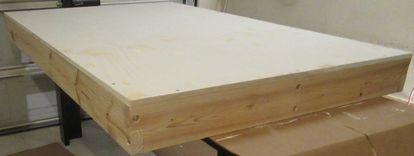 2. 3/4" X 30" X 48" Plywood. Cost $35 ea. 3. 16x 1/4-20 UNC E-Z Lok Inserts $8.00 all. 4. 16x 1/4-20 UNC X 2.0 in. long bolts. Cost 3.50 all. 5. 16x 1/4 Washers. Cost $1.00 all. 6. 14x #10 2" Wood Screws. Cost $0.80 all. 7. Oil Based Primer. Cost $10.00. 8. Oil Based Paint. Cost $10.00. 9. Polyurethane floor paint. Cost $15.00. 10. Plastic wood. Cost $7.50ea. 11. 9" Roll, 3 pack, Wstr Pro 9" X 3/8" nap. Cost $11 all. 12. 2x 9" Paint trays. Cost $3. 13. Tack Clothes. Cost $5 all. 14. 10x Orbital sanding pads. Cost $3.50 Total cost of all materials used included consumables $140 USD.Tools: