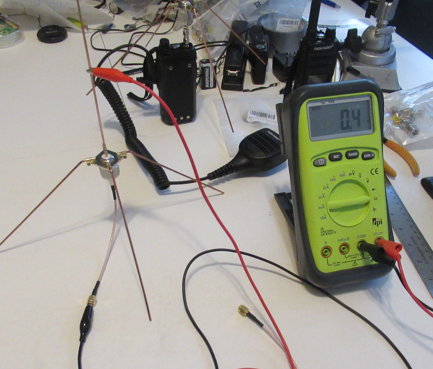 To build a quarter wave ground plane monopole antenna tuned to 465 MHz.